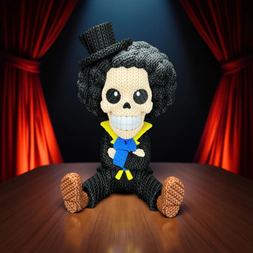The knitted-style detailing gives Brook a handcrafted, warm feel while preserving all his signature traits—from his cane sword and formal attire to his lively, music-loving pose. Carefully 3D printed with clean detailing, this figure is perfect for desks, shelves, or any One Piece-themed display setup.