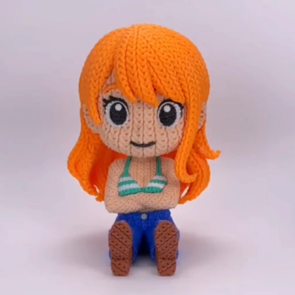 The knitted-style detailing gives Nami a handcrafted, warm feel while keeping all her iconic traits intact—from her outfit and tattoo to her poised, adventurous stance. Carefully 3D printed with clean detailing, this figure is perfect for desks, shelves, or any One Piece-themed display setup.