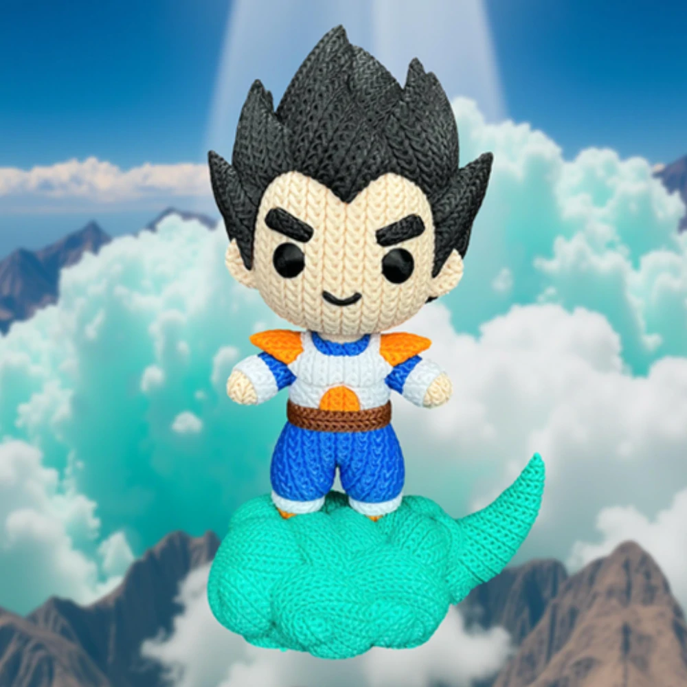 The knitted-style detailing gives Vegeta a handcrafted, warm feel while preserving all his signature traits—from his Saiyan armor to his determined gaze and classic fighting stance. Carefully 3D printed with clean detailing, this figure is perfect for desks, shelves, or any Dragon Ball-themed display setup.