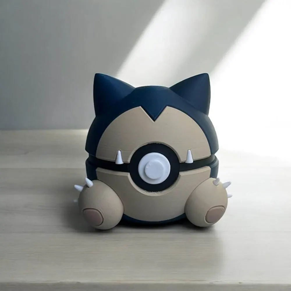 Celebrate the charm of Snorlax with this Snorlax Pokéball (Openable Edition) — a playful and collectible piece made for true Pokémon fans. This 3D printed Pokéball opens smoothly to reveal a detailed inner figure, combining interactivity with a clean, display-ready design.