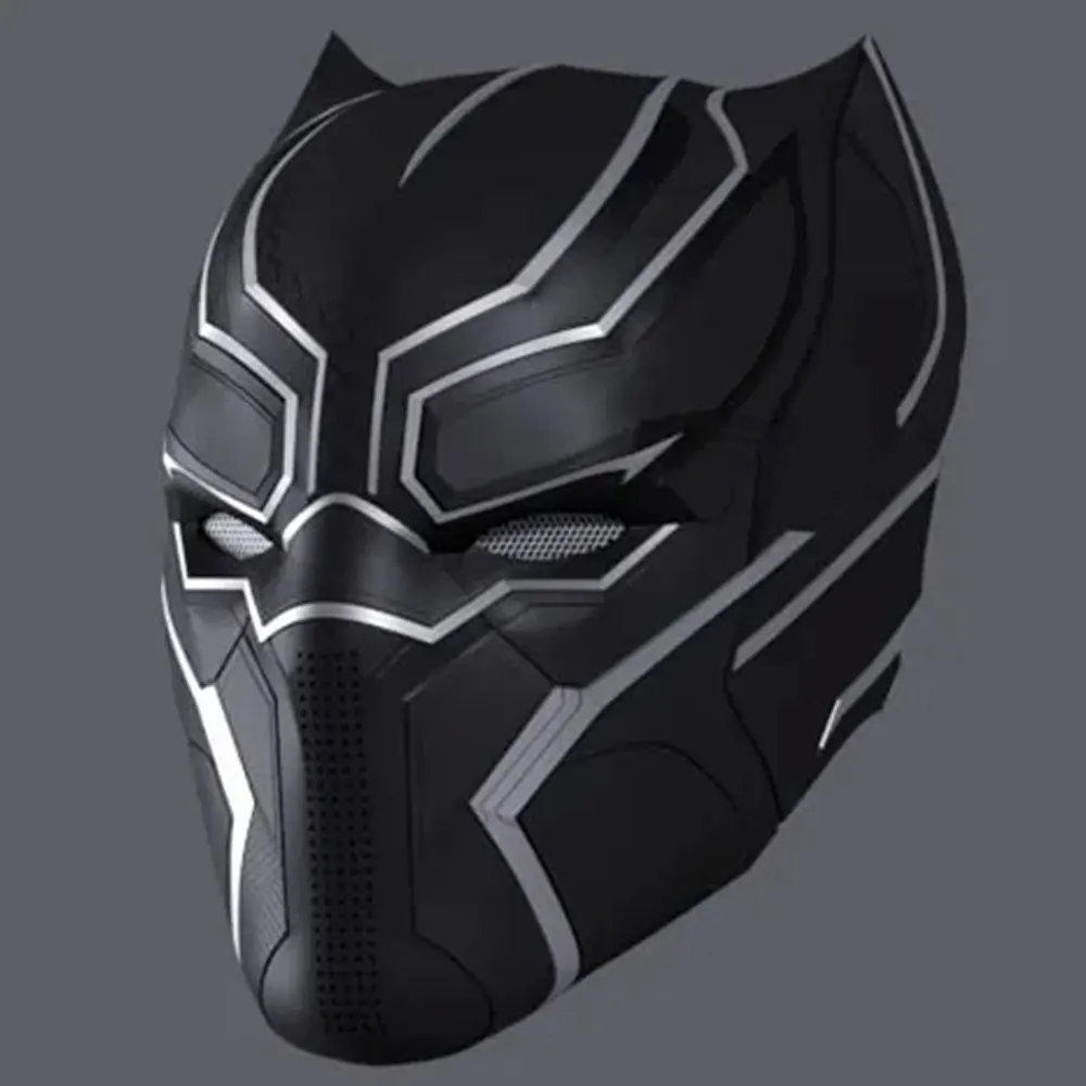 Sleek Black Panther-inspired helmet with sharp detailing and a bold, stealthy finish—ideal for cosplay and collectors.