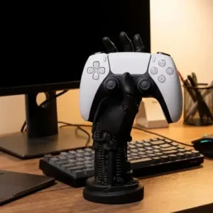 Upgrade your gaming setup with the Cyber Grip – Robotic Hand Controller Stand, a striking fusion of sci-fi aesthetics and functional design. Shaped like a mechanical hand rising from a cybernetic base, this stand securely holds your controller while adding a powerful visual statement to your desk.