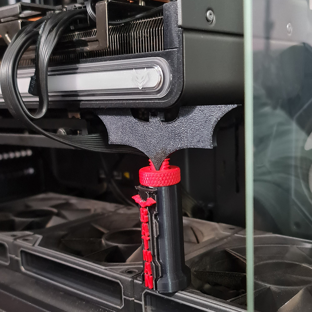 Bring Gotham-level strength to your PC setup with the Batman GPU Support Bracket. Designed for high-end graphics cards, this 3D-printed bracket ensures your GPU stays perfectly aligned while enhancing your build with a bold Batman theme.